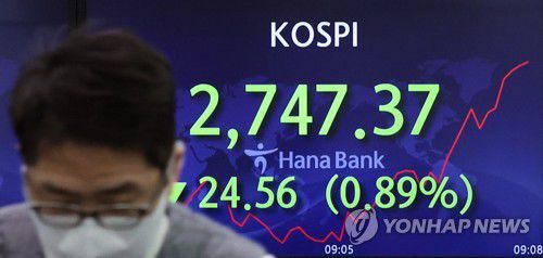 이날 오전 9시 30분 현재 코스피는 전 거래일보다 28.14포인트(1.02%) 내린 2,743.79다.