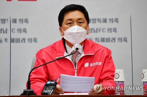 (서울=연합뉴스) 이동환 기자 = 국민의힘 김기현 원내대표는 10일 문재인 대통령이 윤석열 대선 후보의 '적폐 청산 수사' 발언을 고강도로 공개 비판한 데 대해 "정말 한 번도 경험해보지 못한 불법 선거개입이 아닐 수가 없다"고 말했다.