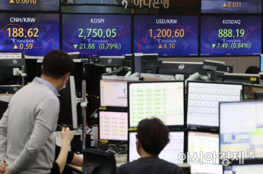 코스피 지수는 이날 오후 1시30분 기준 전일대비 13.83포인트(0.50%) 하락한 2758.10으로 거래되고 있다. 1% 넘게 하락 출발한 지수는 기관의 매도 공세로 장 중 2730선까지 밀렸지만, 장 초반 외국인의 매수세를 확인한 개인들의 사들이면서 낙폭이 줄었다.