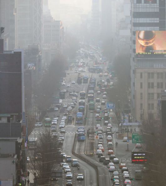 환경부 수도권대기환경청이 서울, 인천, 경기 지역에 미세먼지 예비저감조치를 발령한 11일 서울 종로 도심의 대기가 뿌옇게 흐려져 있다. 12일에도 전국 대부분 지역에서 미세먼지 농도가 ‘나쁨’ 수준을 보이고 서울 등 수도권은 한때 ‘매우 나쁨’ 수준까지 치솟을 것으로 전망된다. 이날 아침 최저기온은 영하 5도∼영상 4도, 낮 최고기온은 영상 6∼14도로 예보됐다.