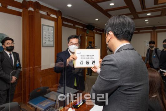 [이데일리 김유성 기자] 제3지대 후보로 문재인 정부 경제부총리 출신인 김동연 새로운물결 대선 후보가 13일 오전 11시 중앙선거관리위원회에서 대통령 후보자 등록 신청서를 제출했다. 항간에 돌고 있는 중도 사퇴나 단일화 가능성을 일축하기 위한 행보로 해석된다.