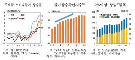 자동차와 가구 가격의 경우 지난해 하반기, 특히 4분기 중에 집중적으로 상승했으며, 해당 품목의 물가상승 확산세는 다른 내구재에 비해 상당폭 높은 수준을 나타냈다.