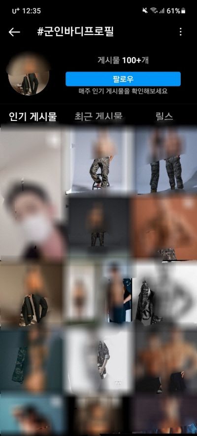 인스타그램에 14일 #군인프로필로 검색되는  군복사진들. 메트로신문