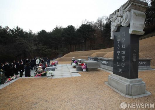 [서울=뉴스핌] 이형석 기자 = 이재명 대선후보가 14일 서울 동작동 서울현충원에서 박정희 전 대통령 묘소 참배를 하고 있다. 2022.02.14 leehs@newspim.com 저작권자(c) 글로벌리더의 지름길 종합뉴스통신사 뉴스핌(Newspim), 무단 전재-재배포 금지