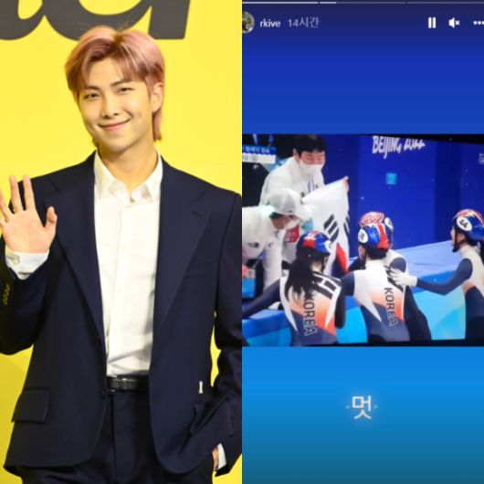 RM은 지난 13일 자신의 인스타그램 스토리에 쇼트트랙 여자 3000m 계주 결승전 직후 여자 대표팀 선수들의 모습이 담긴 중계 화면을 올렸다.