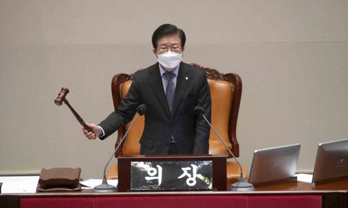 박병석 국회의장이 지난달 11일 국회에서 열린 본회의에서 개의 선언을 하고 있다. 국회사진기자단 |
