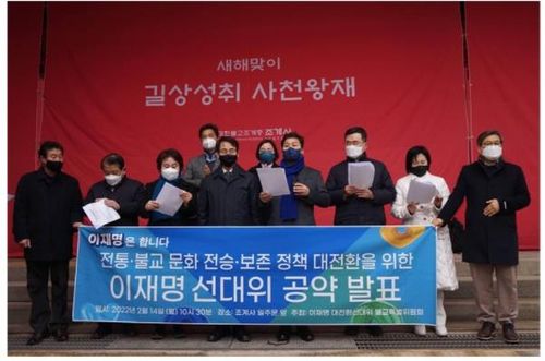 불교특위는 이날 조계사 일주문 앞에서 기자회견을 열고 이러한 내용을 골자로 한 이재명 대선 후보의 불교·전통문화 정책 공약을 발표했다.