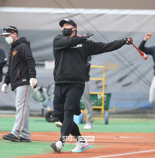 14일 워밍업 후 그라운드로 나온 류현진은 펑고배트를 보더니 갑자기 펑고를 치기 시작했다. 지난해까지 메이저리그 통산 262타석 타율 0.175, 1홈런, 12타점, 32개의 희생번트를 기록한 류현진은 '베이브 류스'라는 별명답게 놀라운 타격 능력을 자랑했다. 류현진은 아예 좌측 담장을 넘긴 뒤 스스로 홈런 콜을 하며 주변 스태프들의 환호성을 자아내기도 했다. 하청스포츠타운 메인구장 좌측 비거리는 98m로 짧은 구장이 아니다.
