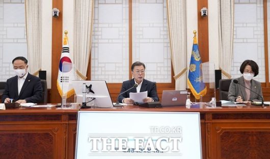 문재인 대통령이 14일 오후 청와대 본관에서 열린 대외경제안보전략회의를 주재하며 발언하고 있다. /뉴시스 |