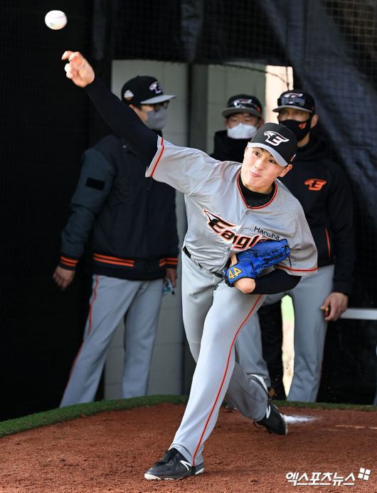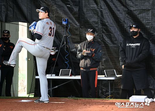 (엑스포츠뉴스 거제, 김한준 기자) 14일 오후 경남 거제시 하청스포츠타운에서 진행된 한화 스프링캠프, 한화 박준영이 불펜 피칭 하는 모습을 영상으로 담아보았다. 김한준 기자 kowel@xportsnews.com