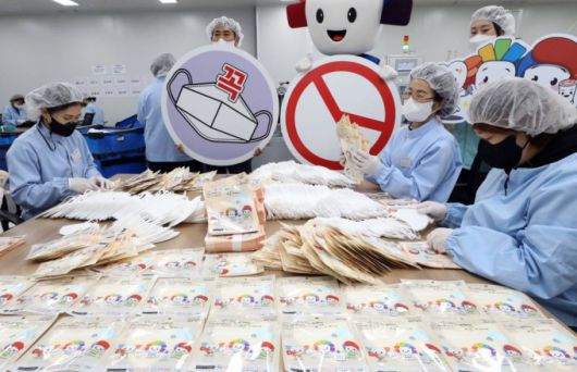 [세종=뉴시스] 강종민 기자 = 세종시 선거관리위원회가 14일 세종시 전의면의 한 마스크 제조업체에서 투표 참여 캠페인 등에 사용될 마스크를 제작하고 있다. 2022.02.14. |