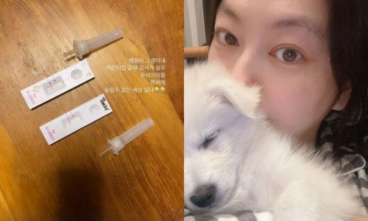 사진에는 신애의 아들, 딸이 어린이집에 가기 위해 코로나19 자가진단키트를 이용해 검사를 한 모습이 담겼다. 다행히 검사 결과는 음성이었다.