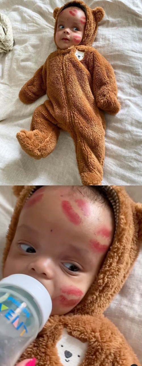 스콧은 14일(현지시간) 개인 SNS에 갈색 곰인형 털옷을 입은 채 침대에 누워있는 생전 젠의 사진과 동영상을 올렸다. 동영상에서 젠은 젖병에 담긴 분유를 먹고 있다. 엄마가 뽀뽀를 한 듯 얼굴에는 붉은 입술 자국이 군데 군데 있다.