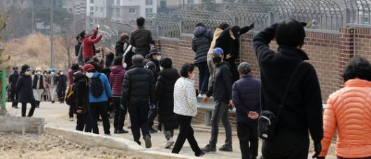 박근혜 전 대통령이 퇴원 후 정치적 고향인 대구에서 생활하기 위해 달성군 유가읍 쌍계리의 한 주택을 본인 명의로 매입한 사실이 알려진 가운데 13일 사저를 구경하려는 시민들이 건물 뒤편 가드레일 위에 올라가 담장 안을 살펴보고 있다. 뉴스1 |