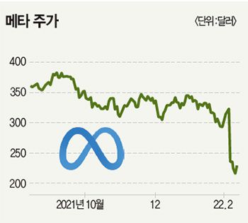 메타(페이스북) 주가가 내리막길을 걷는다. 1월까지만 해도 290~330달러대에서 움직였으나 2월 8일 종가 기준 220.18달러까지 급락했다. 2월 9일에는 232달러로 소폭 반등했지만 연초 이후 이날까지 하락률이 31.47%나 된다. 1월 초부터 2월 9일까지 나스닥종합지수 하락폭(-8.48%)의 3.7배다.