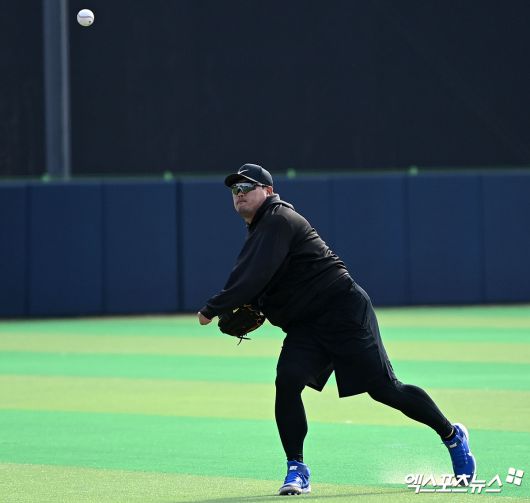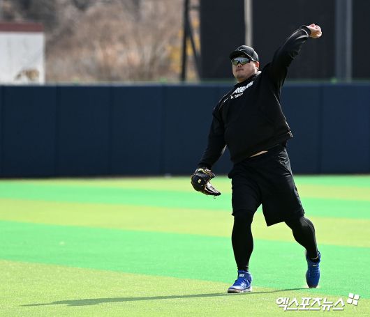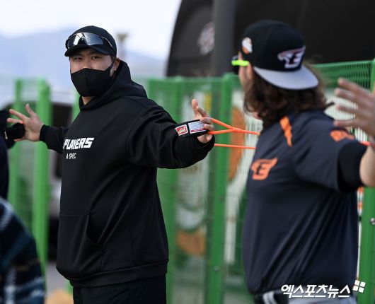 투구 전 킹험과 함께 간단하게 몸을 풀고