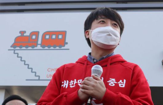 이준석 국민의힘 대표가 지난 11일 오전 천안역에서 출발하는 윤석열 공약홍보 '열정열차'에 탑승하기 전 기자 질문에 답하고 있다. [이미지출처=연합뉴스] |