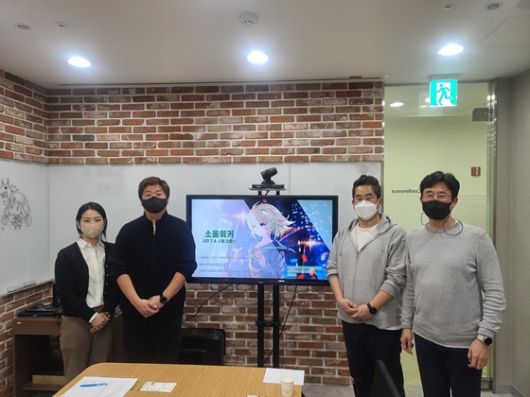 <우측부터 윤성준 라이언게임즈 대표, 박창형 ‘소울워커 러쉬’ PD, 성준희 소울워커 PD, 이경미 사업실장> |