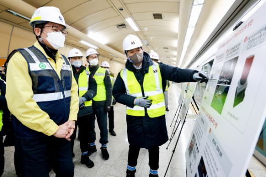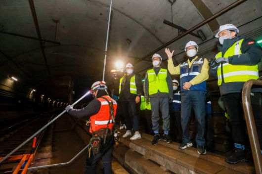 조경식 제2차관은 '코로나 확산, 심야 시간 공사 등 어려운 환경 속에서 공사 현장 관계자분들의 노고가 크다'고 격려하며'지하철을 이용하는 많은 국민들이 고품질 통신 서비스를 누릴 수 있도록 신속,안전한 5G 28㎓ 구축에 힘써 주기를 바란다'고 당부했다.