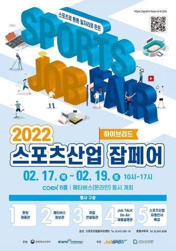 잡페어에 대한 자세한 정보는 국민체육진흥공단 잡스포이즈(https://spobiz.kspo.or.kr/job) 공지사항에서 확인하거나 스포츠산업일자리센터(☎ 02-410-1567∼70)으로 문의하면 된다.