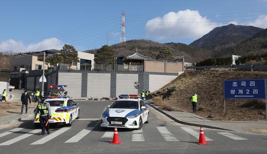 16일 오전 대구 달성군 유가읍 쌍계리 박근혜 전 대통령 사저로 알려진 주택 앞에 경찰 순찰차가 배치돼 있다. /뉴스1 |