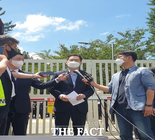 김경수 전 경남도지사가 지난해 7월 26일 창원교도소 수감 전 마지막 메시지를 전하고 있다./창원=강보금 기자 |