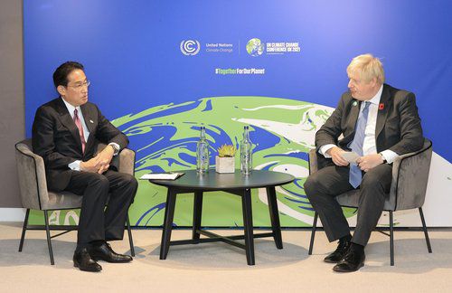 회담하는 기시다와 존슨 |