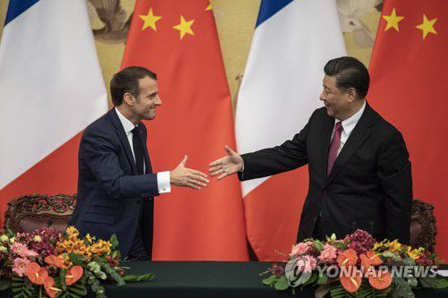 악수하는 시진핑과 마크롱 |