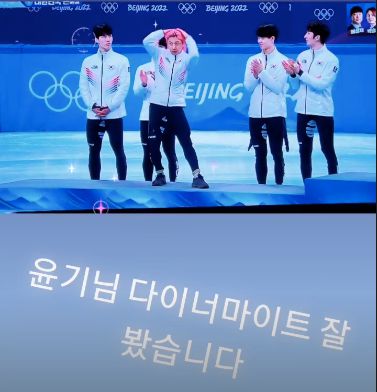 공개된 영상은 쇼트트랙 선수 곽윤기의 시상식 영상. 영상은 '2022 베이징 동계올림픽' 쇼트트랙 남자 5000m 계주 결승에서 은메달을 차지한 곽윤기는 시상대에서 방탄소년단의 다이너마이트 춤을 추고 있다. RM은 곽윤기를 응원해 훈훈함을 자아냈다.