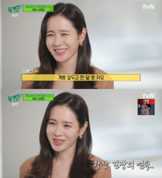 더 나아가 손예진은 "개봉 앞두고 한 달 못 잔다. 내가 안 잔다고 해서 영화가 잘 되고 잘 잔다고 해서 영화가 안 되는 게 아닌데도 불구하고 뻔히 알면서도 같이 연기했던 배우들, 고생했던 스태프들을 생각하면 너무 떨리고 걱정되고 '망하면 어떻게 하지?' 이런 생각도 너무 많고 항상 긴장의 연속이다"라며 고백했다.