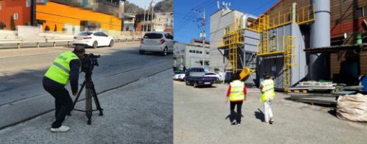 경상남도 민간감시단이 김해시에서 미세먼지 불법 배출 여부를 점검하고 있다. |