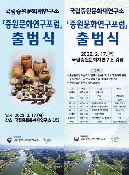 2007년 문을 연 국립중원문화재연구소는 중원지역 고대 문화 실체 파악을 위한 학술발굴조사와 연구를 진행해왔다. ‘중원문화연구포럼’은 이러한 연구 성과를 한 단계 높이기 위한 것이다. 문헌사, 도시·토기, 관방(국경, 도시 등의 방비를 위해 설치한 성곽, 봉수 등의 시설 유적), 사찰·미술, 북방교류, 제철 등 6개의 학술분과 외에도 전시·교육, 활용·홍보 등 다양한 분야의 전문가들이 참여한다. 국립중원문화재연구소는 이번 행사를 통해 각 기관과의 상호 교류 협력 체계를 구축하고, 중원문화권 정체성 규명에 박차를 가할 예정이다.