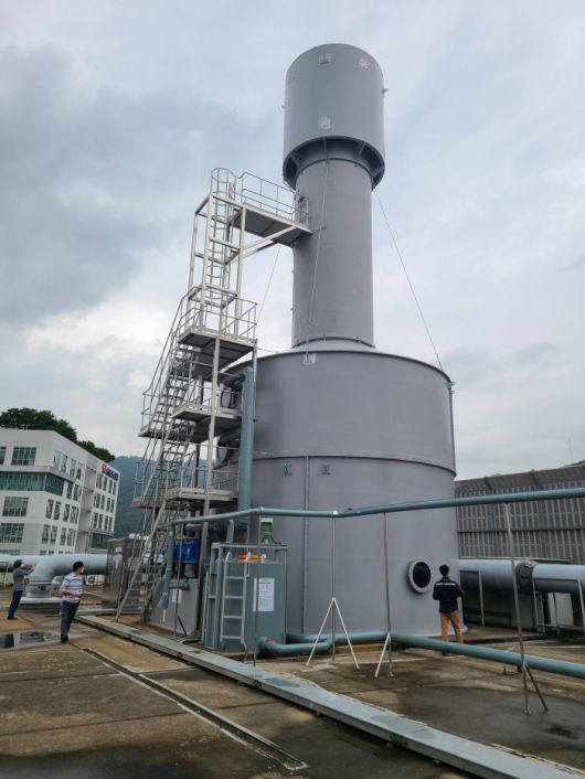 경기 성남시 상대원동 소재 아파트형 공장에 설치된 대기오염물질 흡수시설 세정탑. 성남시 제공 |