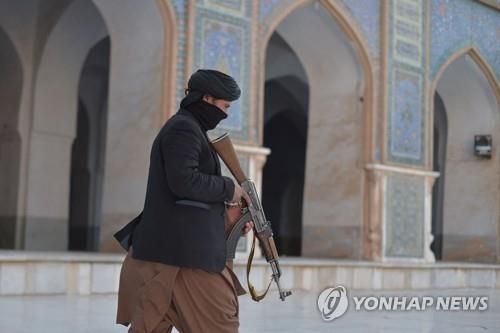 아프간 헤라트의 모스크 내에서 총을 들고 걷는 탈레반 |