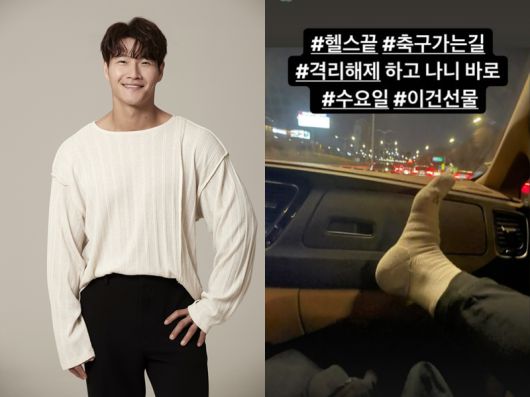 김종국은 17일 자신의 인스타그램 스토리에 "헬스 끝. 축구가는 길. 격리해제 하고 나니 바로 수요일. 이건 선물"이라는 글과 함께 사진 여러 장을 게재했다.