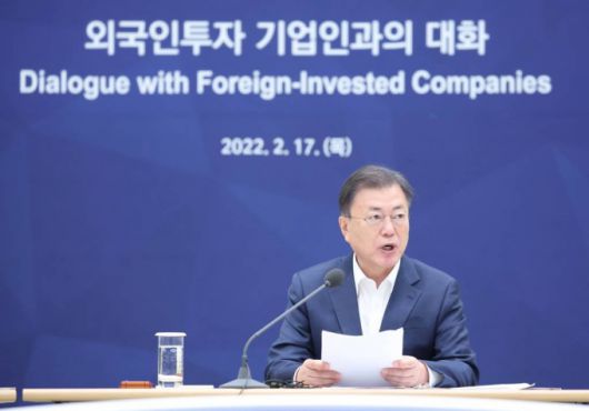 문 대통령은 간담회에서 "글로벌 경제 불확실성이 높아지는 환경에서도 2021년 역대 최대 외국인 투자가 유입된 것은 한국이 안정적이고 매력적인 투자처임을 입증한 것"이라며 "대한민국을 믿고 투자해 준 외투 기업인, 외국 상의 대표들께 감사하다"고 강조했다.