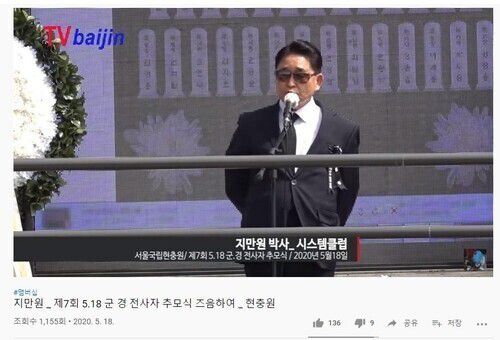 지만원씨가 2020년 5월 서울 국립현충원에서 5·18민주화운동은 북한군 소행이라고 발언하는 모습을 담은 유튜브 영상. 연합뉴스 |