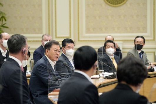 문재인 대통령이 17일 외국인투자 기업인들을 만나 “반도체, 배터리, 백신과 같은 국가전략기술과 탄소중립에 기여하는 제품의 생산과 투자에 대해 세제와 현금지원을 강화할 것”이라고 말했다.