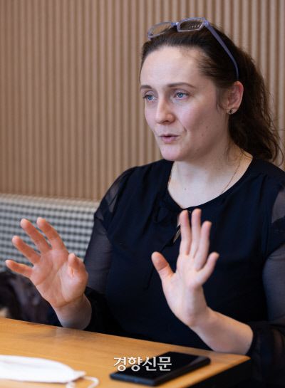 올레나 쉐겔 한국외대 교수가 17일 경기 남양주의 한 카페에서 경향신문과 인터뷰를 하고 있다. | 우철훈 선임기자 |
