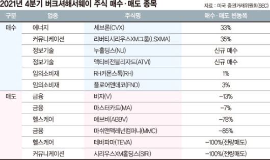 버크셔해서웨이는 이외 정유업체 셰브론과 미국 미디어그룹 리버티의 자회사인 위성라디오업체 리버티시리우스XM그룹, 고급 가구 소매업체 RH커몬스톡의 지분을 늘렸다.