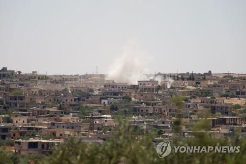 내전 중인 시리아 북서부 마을에 포탄이 떨어진 모습 |