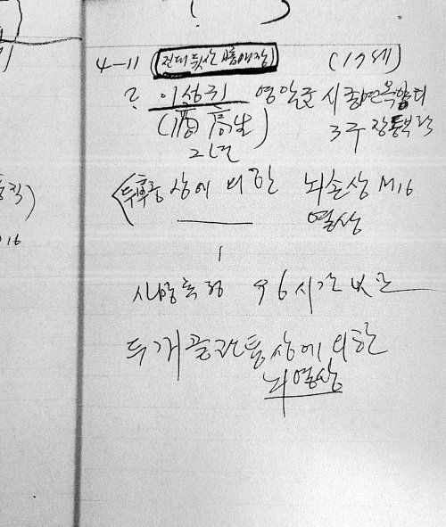 김이수 전 헌법재판관이 1980년 군 검찰관 복무 당시 5·18민주화운동 사망자의 암매장 사실을 기록한 메모(사진)를 남긴 것으로 17일 확인됐다.