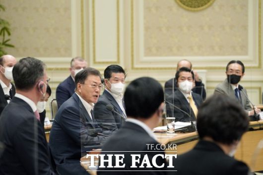 18일부터 낙동강 하굿둑이 연중 개방되는 것과 관련해 문재인 대통령은 "감개무량하다"는 소감을 밝혔다. 문 대통령이 지난 17일 청와대 영빈관에서 열린 외국인투자기업인과의 대화에 참석, 발언하는 모습. /청와대 제공 |