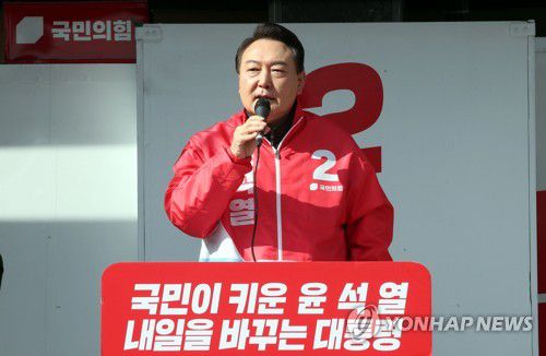 윤 후보는 이날 오전 경북 상주 풍물시장에서 유세를 시작했다.
