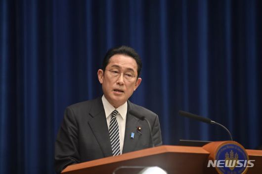 [도쿄(일본)=AP/뉴시스]지난 17일 일본 도쿄 총리 관저에서 기시다 후미오 일본 총리가 기자회견을 가지고 발언하고 있다. 2022.02.18. |
