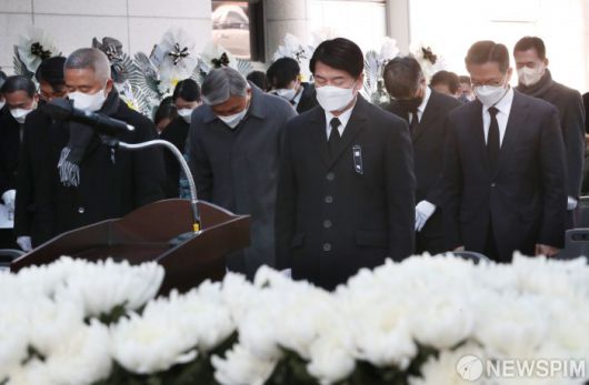 안 후보는 "손 동지를 떠나보내는 당원동지들의 아쉬움과 결연함을 담아 더욱더 단단해지겠다. 어떤 풍파에도 굴하지 않고 최선을 다함으로써 손 동지의 뜻을 받들겠다"며 "반드시 승리해 이념과 진영의 시대가 아닌 과학과 실용의 시대를 열어 대한민국의 역사에 남을 새 시대를 열겠다"고 밝혔다.
