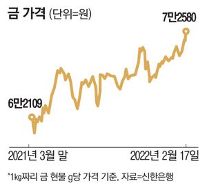 작년 이후 전 세계 자산시장 성장을 가로막는 인플레이션 헤지 수단으로서도 금은 귀한 몸이다. 미국 연방준비위원회가 "인플레이션은 일시적 현상이 아니다"고 말한 이후 공격적인 금리 인상을 선언하자 전 세계 투자자들은 대표 안전자산인 금으로 몰려가고 있다. 국내에서도 고액 자산가들을 중심으로 금 투자를 늘리는 상황이다. 실제로 KB국민·신한·우리은행 금 통장(골드뱅킹)은 작년 1월 6327억원이었던 잔액이 올 들어 7000억원을 넘어섰다. 1년 새 금 통장 규모가 11%가량 불어난 것이다.