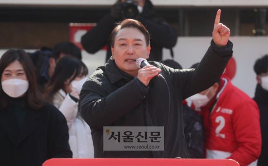 220217 윤석열 성남 야탑 유세 윤석열 국민의힘 대선 후보가 17일 오후 경기도 성남시 야탑역 광장에서 열린 ‘부패 없는 성남! 공정한 대한민국!”거리유세에서 지지를 호소하고 있다.2022. 2. 17 정연호 기자 |