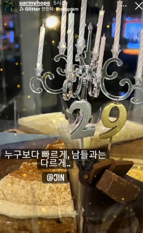 그 중에서도 BTS의 맏형 진이 제이홉에게 보낸 선물이 화제다. 제이홉은 18일 자신의 SNS에 "알러뷰 진형"이라는 글과 함께 진이 보낸 '새벽딸기'와 29라는 숫자가 박힌 화려한 생일 케이크를 인증했다.