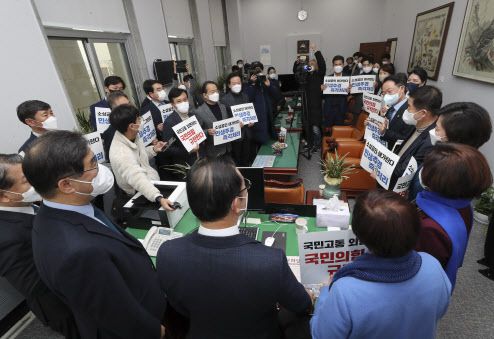 [이데일리 김무연 기자] 내달 9일 치러지는 20대 대선을 앞두고 여당이 추가경정예산(추경)안 처리를 압박하기 위해 사실상 농성에 들어갔다. 야당인 국민의힘이 17조원 안팎으로 예상되는 현재 추경안 처리에 반대하고 있는 가운데 단독처리 의지도 내비치고 있다.